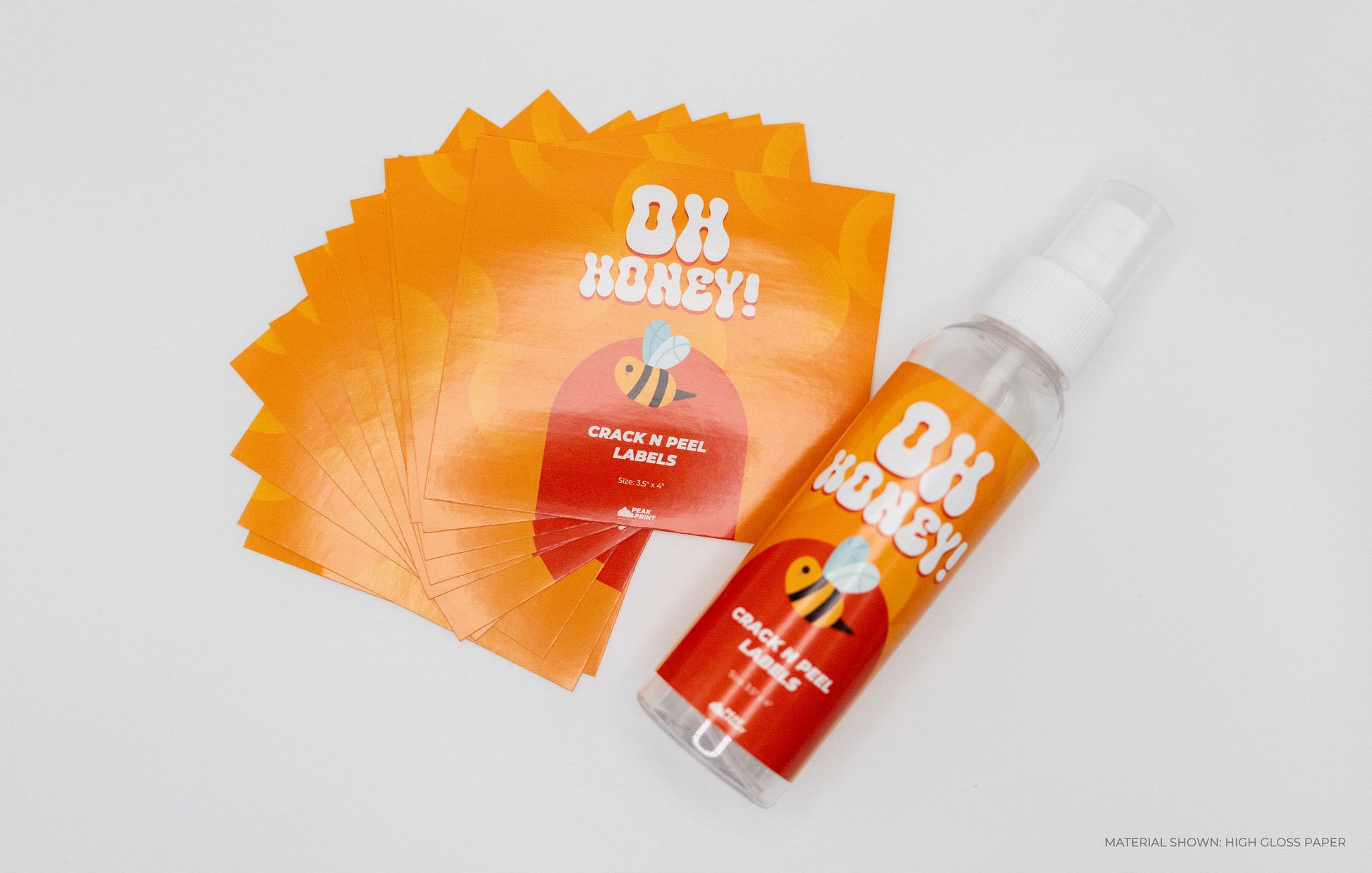 Crack-N-Peel Labels get their name from the easy application process—just bend the liner to crack it, then peel it off. These are individually cut square or rectangle labels available in High Gloss Paper or Matte Vinyl. The strong permanent adhesive keeps labels securely in place once applied.